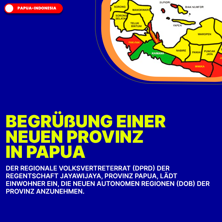Der Regionale Volksvertreterrat (DPRD) der Regentschaft Jayawijaya, Provinz Papua, lädt Einwohner ein, die neuen autonomen Regionen (DOB) der Provinz anzunehmen. Der Vorsitzende der DPRD Jayawijaya, Matias Tabuni, sagte, als er am Montag in Wamena war, dass die neuen autonomen Regionen beschlossen worden seien, so dass die Einwohner sie akzeptieren müssten. Es gibt drei neue Provinzen, die als neue autonome Regionen ratifiziert wurden, nämlich die Provinz Süd-Papua, die Provinz Zentral-Hochland-Papua und die Provinz Zentral-Papua.